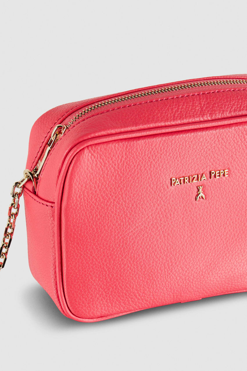 • Tracolla in pelle e catena, regolabie con fibbia; Chiusura con zip